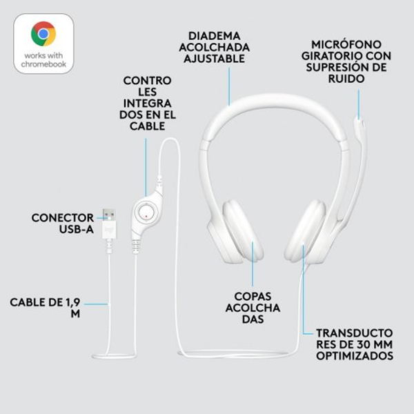 ÷ Headset logitech h390 microfono con supresion de ruido usb color blanco p/n: 981-001286