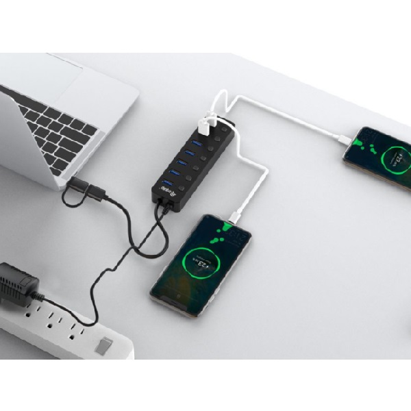 HUB USB EQUIP LIFE 128965 7 PUERTOS USB-A 3.2 GEN1 CON INTERRUPTOR LED 5V/2A INCLUYE ADAPTADOR A USB