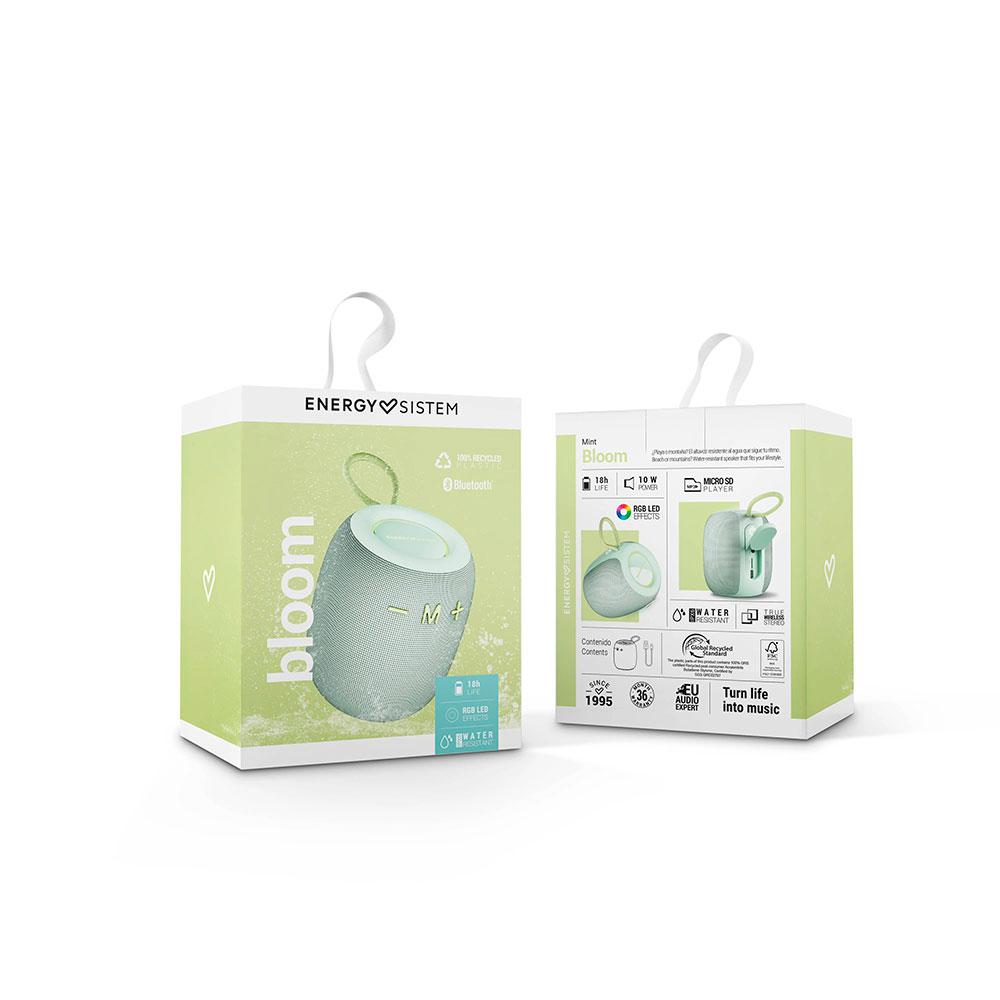 ÷ Altavoz bluetooth portable energy sistem bloom mint bt 5.3 10w iluminacion rgb ipx6 microsd 18h