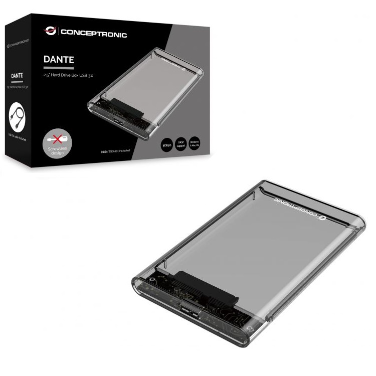 CAJA EXTERNA 2.5 USB 3.0 CONCEPTRONIC USB 3.0 SATA TRANSPARENTE SIN TORNILLOS DANTE03T»