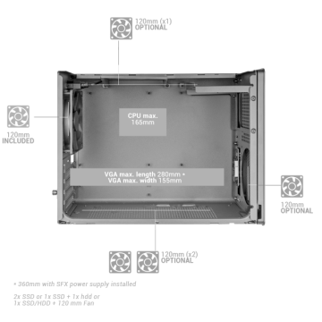 CAJA MICROATX MARS GAMING MCXPROW MESH 360 GPU 280-360mm 1×3.5 2×2.5 BLANCO COMPATIBLE ATX/SFX