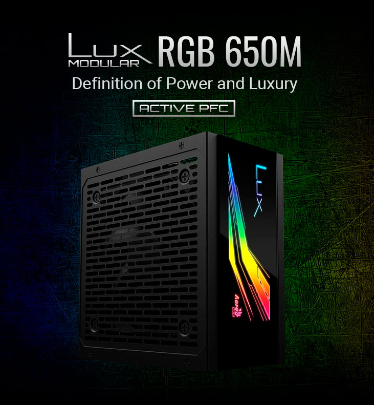 FUENTE ALIMENTACION AEROCOOL LUX RGB 650W, CERTIFICADO 80 PLUS BRONZE, MODULAR , PFC ACTIVO, VENT. 1