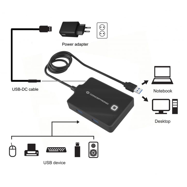 ÷ Hub usb3.0 conceptronic hubbies11b 4 puertos y cable de 90cm con alimentador