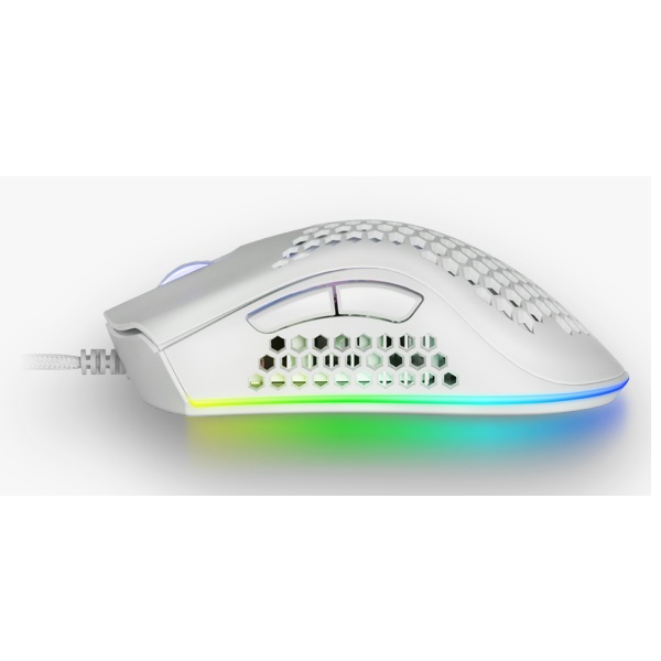 MOUSE MARS GAMING RGB MMEX DISE¾O HIVE WHITE 32Kdpi PIXART 3389PRO SWITCH SUPERFICIE PERFORADA ILUMI