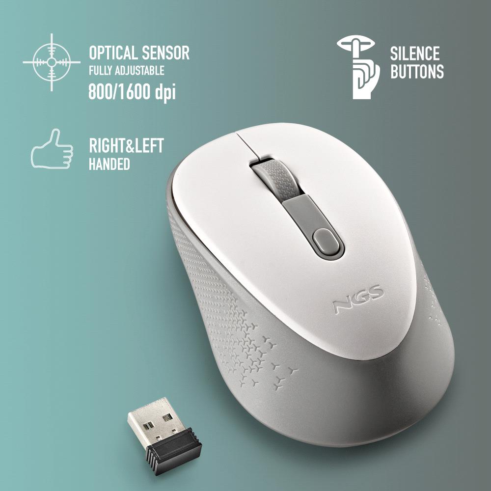 ÷ Mouse ngs wireless dew white con nano receptor-800/1600 dpi 2,4ghz blanco