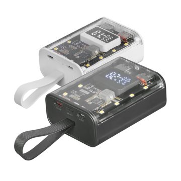 POWERBANK MARS GAMING 10000mAh 1xUSB-C PD 2xUSB-A 1xMicroUSB LINTERNA DISEÑO TRANSPARENTE Y NEGRO