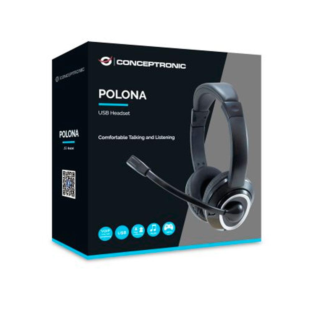 Auriculares con Microfono flexible Conceptronic Polona / Usb / VoIp / Negro POLONA01B