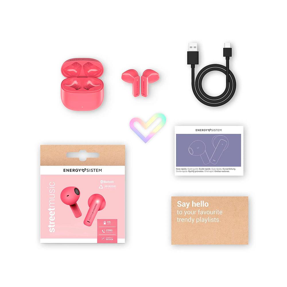 Auriculares completamente inalámbricos gracias a la tecnología True Wireless Stereo y Bluetooth 5.4. Micrófono incorporado y llamadas en estéreo para hablar. cómodamente sin preocuparte del ruido. Accede a tu smartphone mediante el asistente de voz de una forma rápida y sencilla. Graves profundos y sonido contundente gracias a su driver de 13mm. ¡Vibrarás en cada canción! Disfruta de tu música y llamadas y olvídate de la batería con sus 20 horas de autonomía. 4 horas por cada carga de los auriculares y 16 horas adicionales en el charging case. Auriculares con diseño compacto, gran confort y seguridad. Auriculares fabricados con plástico 100% reciclado y packaging de cartón reciclado, certificados con GRS y FSC. Especificaciones: AUDIO -Diámetro: 13 mm -Percepción de graves (0 al 10): 7 -Percepción de fidelidad (0 al 10): 7 -Latencia: <200ms -Impedancia: 16