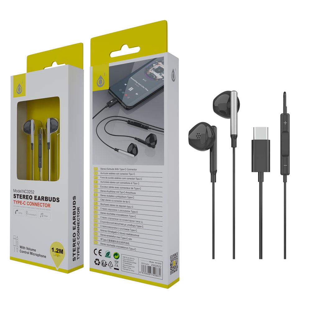 Auriculares + Micro NC3252 / Conexion Type-C / 1.2m / Negro / One+ / 2302522
