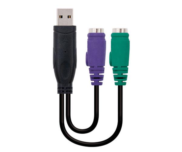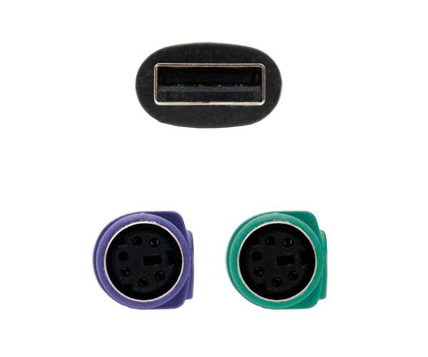 Conversor 2 x PS/2 (Teclado+Ratón) hembra a USB2.0 tipo A macho para convertir la conexión PS/2 a USB.