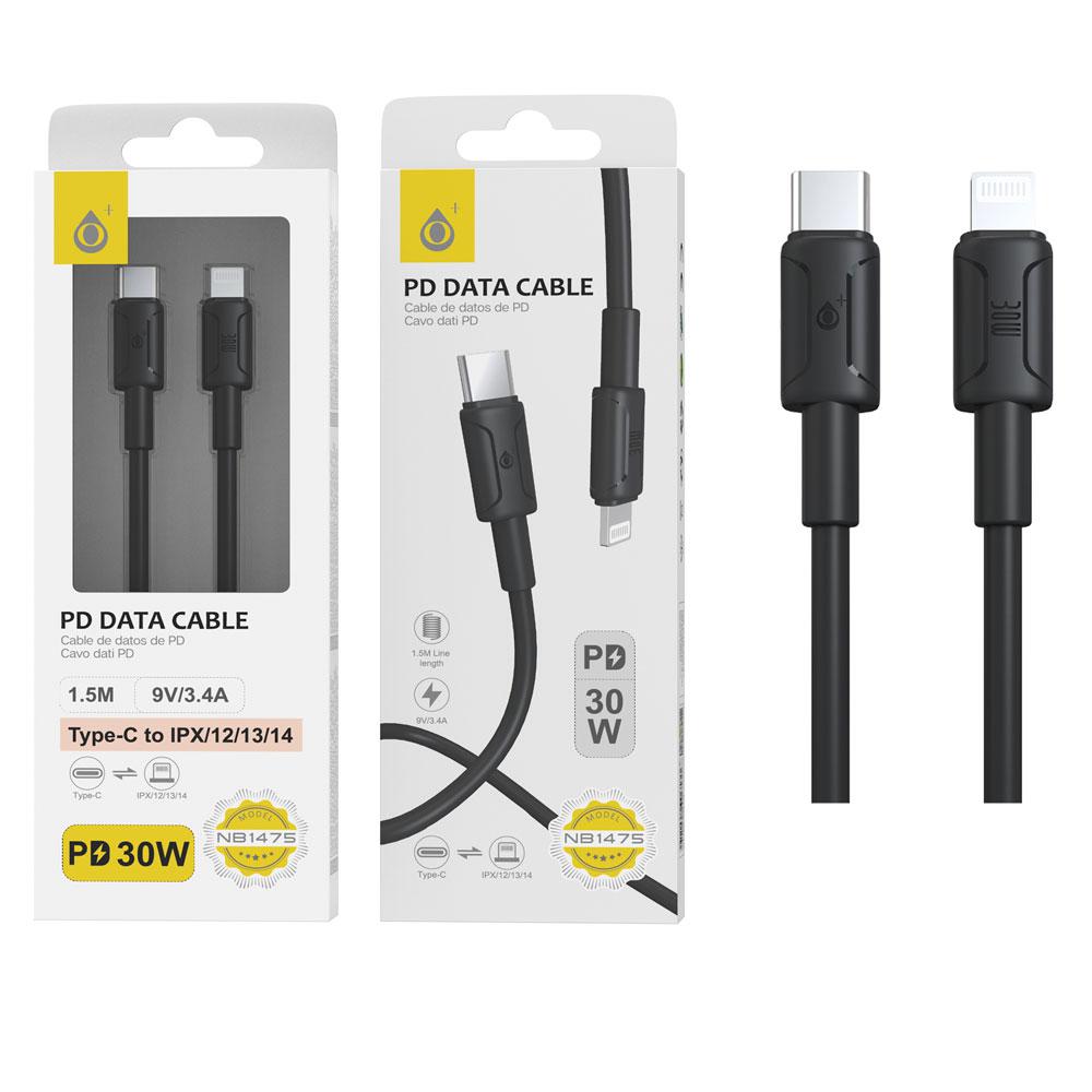 Cable datos Type-C a Lightning Iphone / 1.5 m / 3.4a / NB1475 / Carga Rapida PD / Negro / 2104752 / One+