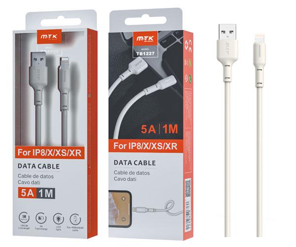 Cable datos USB 2.0 a Lightning IPhone 12-14 / 1m / 5a / Indicador de carga / TB1227 / Blanco / Mtk