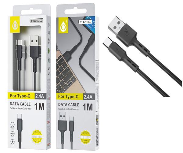 CABLE DATOS USB 2.0 A TYPE-C B6110 ONE+   Conectores: Usb macho a Usb-c macho Amperaje: 2.4a Longitud: 1m Usb: Usb 2.0 compatible con la carga rapida y transferencia de datos de alta velocidad. Color: Negro