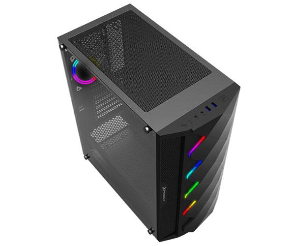 – Su frontal rompedor, mezcla un diseño basado en rombos, resaltado por una línea vertical ARGB LED perfilando, la cual podrás cambiar y sincronizar con el ventilador trasero ARGB incluido, entre sus distintos modos de iluminación gracias a su botón en la parte superior.