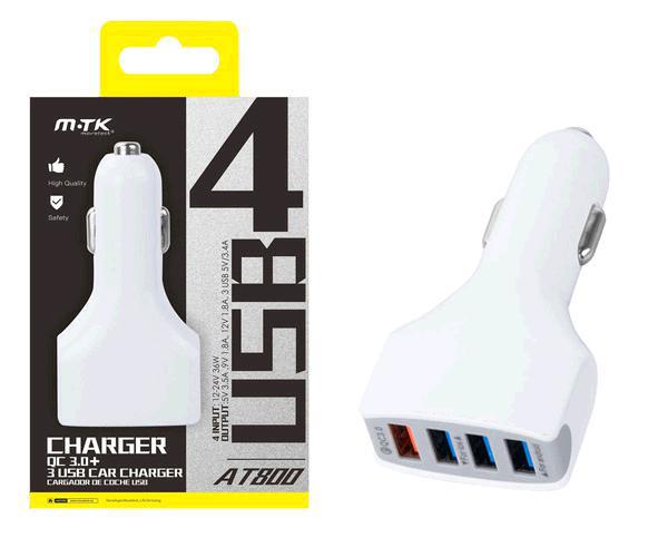 Cargador de coche-mechero Usb x4 / 36w / Blanco / At800 / Mtk / 0051541