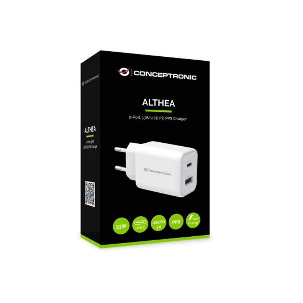 El cargador USB ALTHEA11W ofrece carga eficiente y rápida, con un puerto USB Type-C con tecnología Power Delivery (PD) que detecta y carga automáticamente dispositivos como Samsung Galaxy S21/S20/Note10/Note20/Note20, Nintendo Switch, iPad, iPhone, etc., a velocidad de hasta 33W. El cargador está protegido contra sobrecarga, cortocircuitos y sobrecalenamiento, y con un diseño compacto y ligero, es un gran dispositivo de viaje y acompañante diario. Se basa en la oferta de alimentación programable (PPS) para mejorar la eficiencia de carga y reducir el calor USB Power Delivery (PD) Tecnología 3.0 con función de carga rápida Salida USB-C: DC 3.3-11V/3A, 3.3-16V/2A (PPS) 5V/3A, 9V/3A, 12V/2.5A, 15V/2A, 20V/1.5A (PD) Salida USB-A: DC 5V/3A, 9V/3A, 12V/2.5A, 20V/1.5A (QC 3.0) USB-C – salida USB-A: 5V/3A Cargos Samsung Galaxy S21/S20/Nota10/Nota20, Nintendo Switch, iPad, iPhone y otros dispositivos compatibles con USB Especificaciones