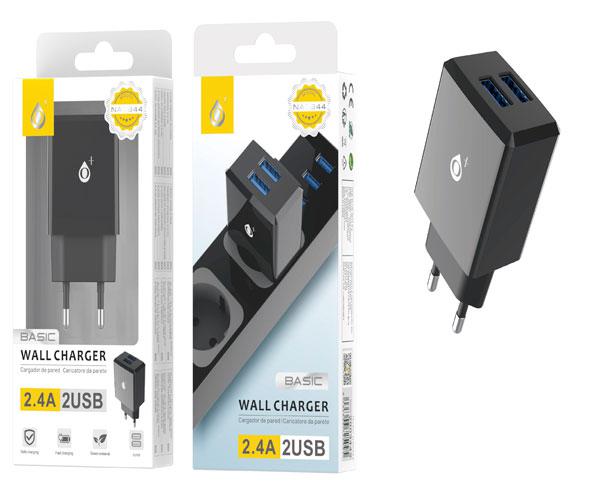 Cargador de red Usb x2 / 12w / Negro / Jody NA0344 / One+
