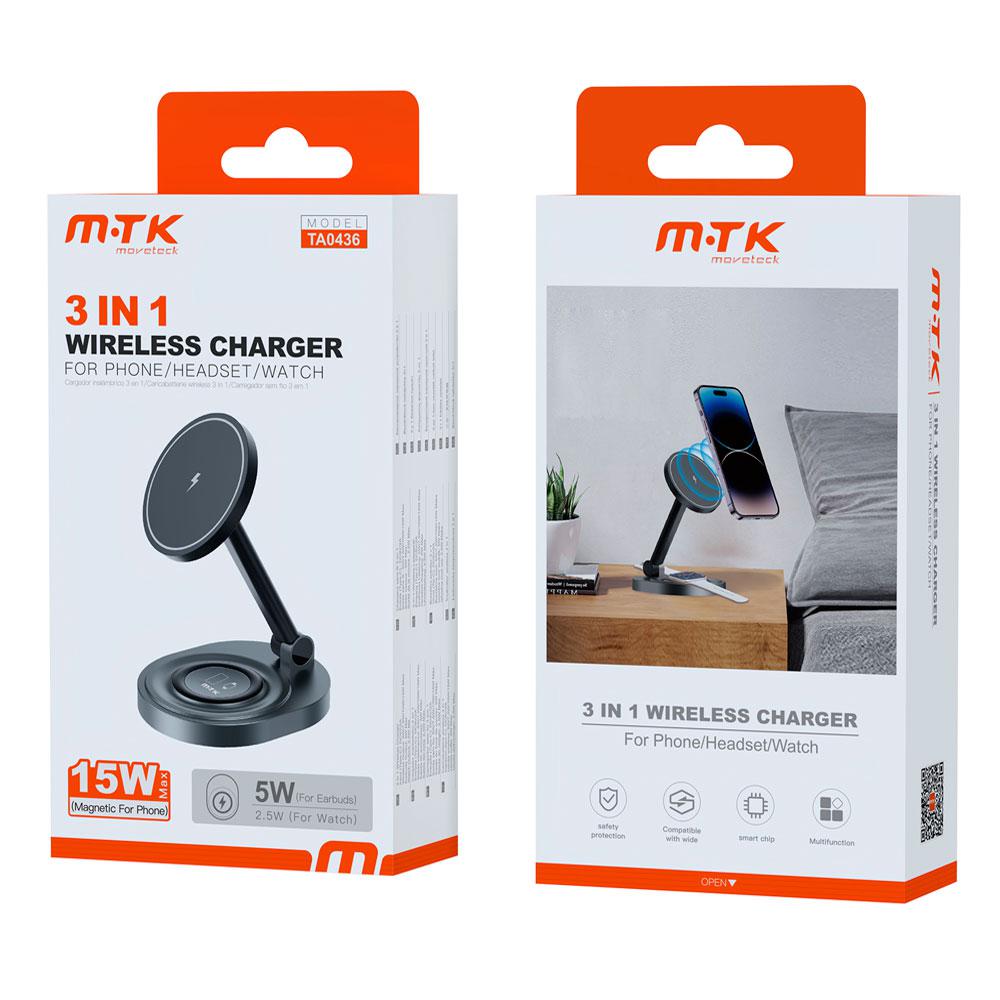 Cargador Inalámbrico QI 3 EN 1 / 15W / TA0436 / Negro / Mtk / 0054362