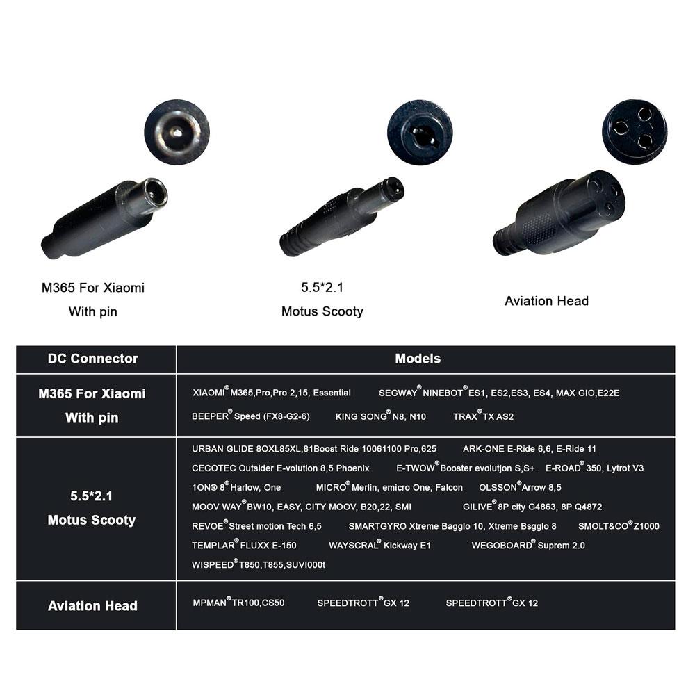 Conector: Xiaomi 8.0×5.5mm / Motus Scooty 5.5×2.1mm / Aviation Head