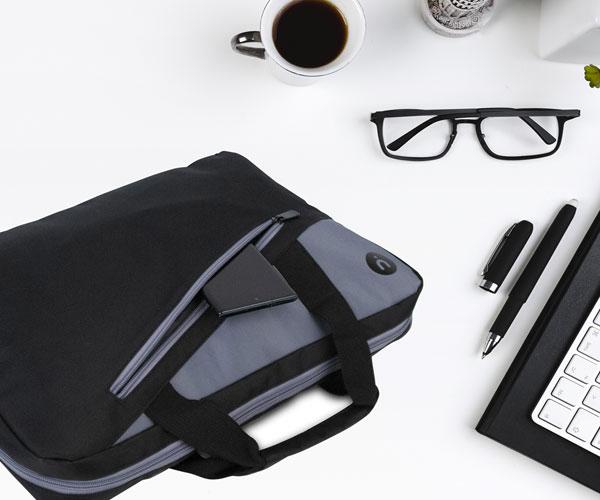Maletín elegante, ligero y funcional para portátiles de hasta 14". Ginger Black, está pensado para las personas que aprecian la estética y la vanguardia, es el complemento perfecto para llevar a todas partes tu laptop. – Este maletín de diseño exclusivo combina el color negro con detalles en gris. Ha sido ideado para transportar portátiles de hasta 14″. Fabricado en nylon resistente y de calidad, ofrece protección a tu portátil. En el interior encontrarás dos compartimentos separados para que puedas llevar todo ordenado. – Además, en la parte frontal incluye un bolsillo para guardar tus accesorios y facilitarte el acceso a los mismos. – Su gran versatilidad le permite convertirse en bolso de mano o bandolera, para ello cuenta con una cinta ajustable de quita y pon. – Por último, en la parte posterior de la bolsa cuenta con una banda que permite engancharse a un trolley. Capacidad: 14″ Compartimentos: 2 Dimensiones: 36 x 28 x 7 cm