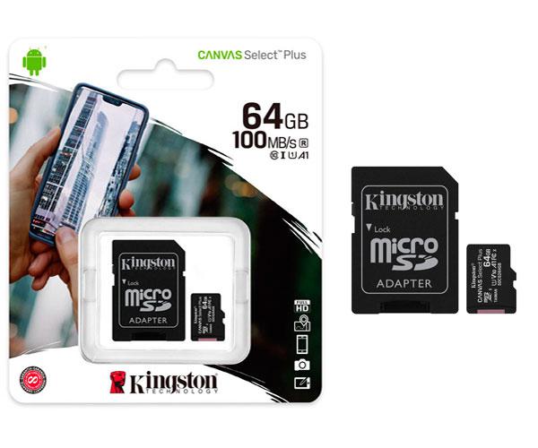 Micro sd hc Kingston uhs-i 64Gb Canvas Select Plus 100mb/s clase 10 con adaptador SDCS2/64GB