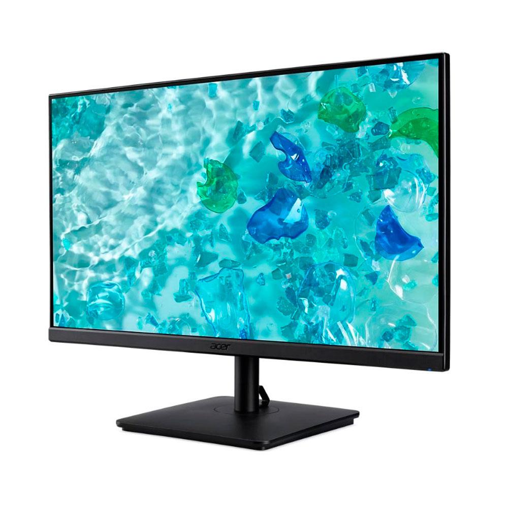 Nuestros monitores Acer Vero V7, diseñados teniendo en cuenta la sostenibilidad y con una resolución de hasta Full HD UHD1, te ayudan a ser más respetuoso con el medioambiente a la vez que garantizan tu productividad en el trabajo. Diseño sostenible Nuestros monitores Vero están diseñados para ofrecerte pantallas más sostenibles. Este monitor está fabricado con un 35 % de PCR, utiliza un embalaje 100 % reciclable y cuenta con las certificaciones TCO, ENERGY STAR® y EPEAT Silver. Una experiencia digna de ver Lleva la productividad al siguiente nivel con la resolución Full HD de alta definición.1 El texto, las imágenes y mucho más se verán con nitidez y claridad para disfrutar de una experiencia de usuario más agradable. Imágenes intensas Tanto si capturas fotos como si editas vídeos, la cobertura de color DCI-P3 del 90 %1 con hasta 1,07 mil millones de colores1 y la compatibilidad con HDR101 te ofrecen colores más precisos y una profundidad de color mejorada para destacar todos los detalles de tu trabajo. Protege la vista Este monitor viene equipado con tecnologías de protección de la vista Acer VisionCare, como Acer BlueLightShield Pro, Flickerless, Low-Dimming y ComfyView. AMD FreeSync1 Con AMD Free Sync, la velocidad de fotogramas del monitor se sincroniza con tu tarjeta gráfica, lo que elimina el tearing de la pantalla y ofrece una reproducción de vídeo extremadamente fluida. El ángulo perfecto Inclina y utiliza una montura VESA en este monitor para tener siempre un ángulo perfecto para ver el contenido. Exhibición Diagonal de la pantalla π,5 cm (23.8″) Resolución de la pantalla 𖜐 x 1080 Pixeles Relación de aspecto nativa Δ:9 Tecnología de visualización 	LED Pantalla táctil 	No Tipo HD 	Full HD Brillo de la pantalla (típico) ␢ cd / m² Tiempo de respuesta [ ms Pantalla antirreflectante 	Si Forma de la pantalla 	Plana Relación de aspecto Δ:9 Relación de contraste (dinámico) �:1 Máxima velocidad de actualización π Hz Diagonal de pantalla π cm Desempeño NVIDIA G-SYNC 	No AMD FreeSync 	Si Multimedia Cámara incorporada 	No Diseño Color del producto 	Negro Puertos e Interfaces Cantidad de puertos VGA (D-Sub) [ HDMI 	Si Versión HDMI [.4 Control de energía Clase de eficiencia energética (SDR) 	E Consumo de energía (SDR) por 1000 horas Ζ kWh Consumo de energía (inactivo) Z,5 W Consumo de energía (apagado) Z,3 W Escala de eficiencia energética 	De la A a la G Contenido del embalaje Stand incluido 	Si Cables incluidos 	HDMI, Poder