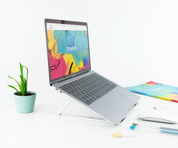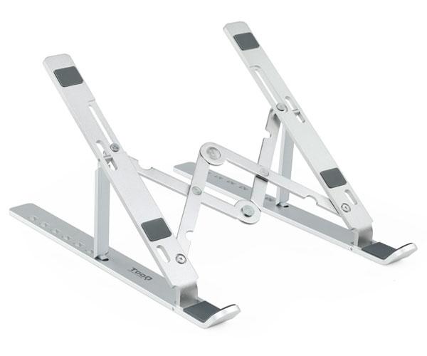 Tooq Soporte para Portatil hasta 15″ – 7 Niveles de Altura – Plegable – Base Antideslizante – Peso Max 5kg – Color Plata
