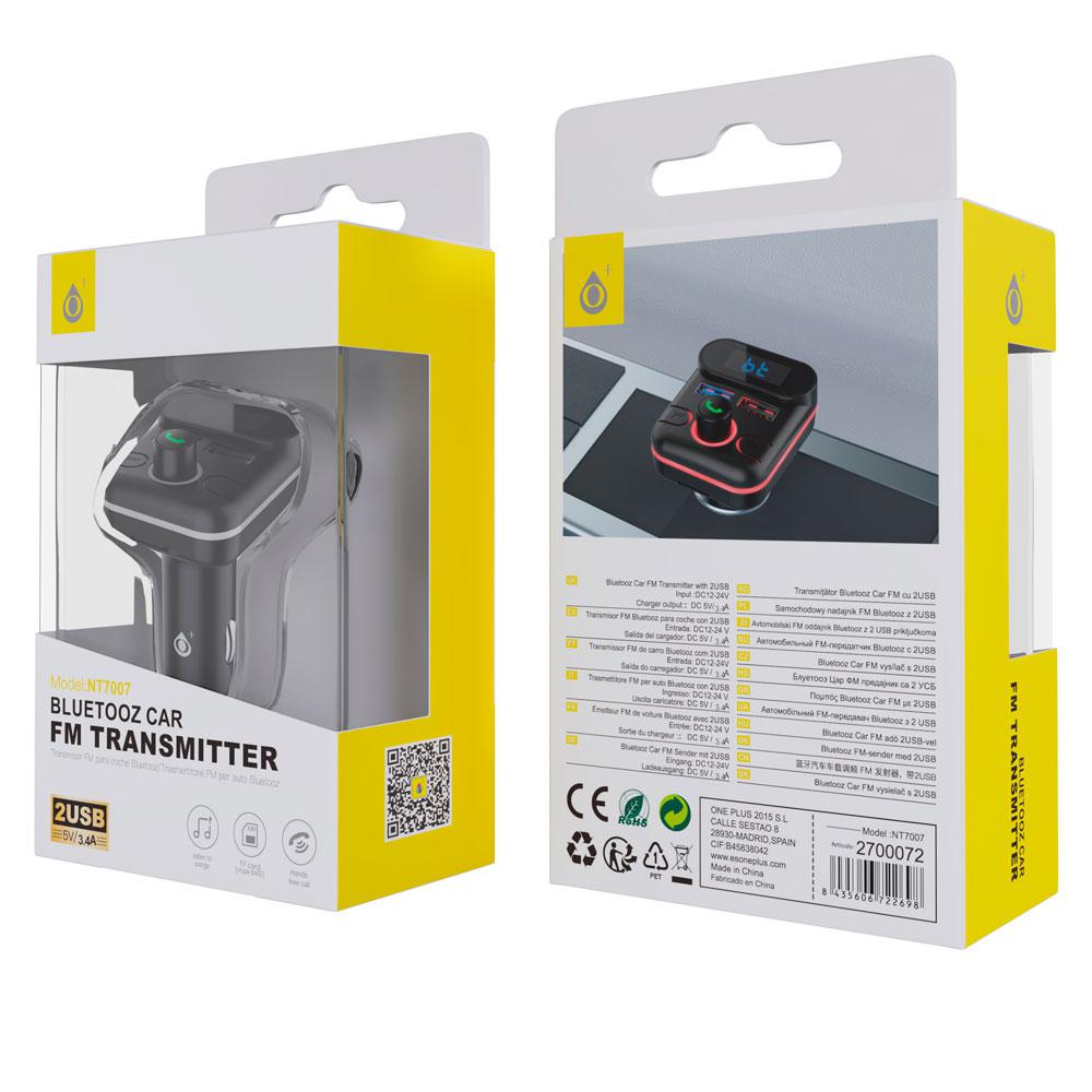 ENVÍA MEDIANTE SEÑAL DE RADIO FM LA MÚSICA CONTENIDA EN UNA MEMORIA USB / MICRO SD Y BLUETOOTH.